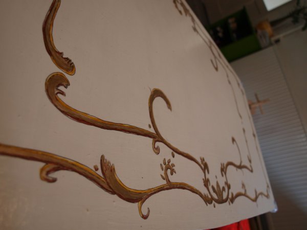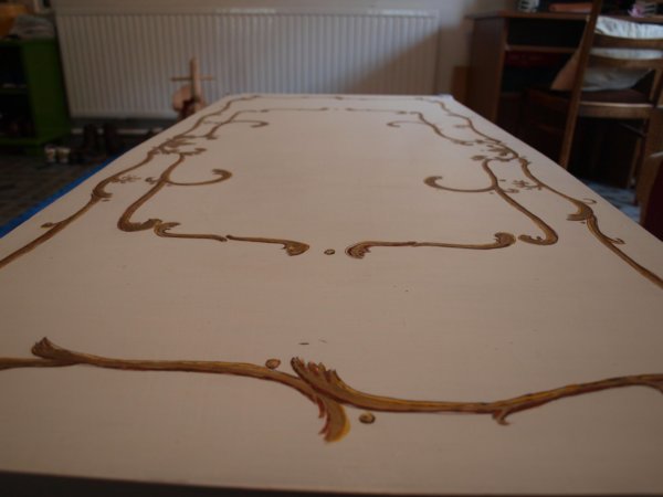 Hogy miért nem volt akkor jó eredeti állapotban? A szerkezete még mindig erős és jó állapotban van, csak a lapján levő lakkozás már nagyon kopott és csúnya volt. Tudom, újra lehetett volna lakkozni is, de az nekem túl egyszerű megoldás lett volna. Egyik este elkapott a “egy perccel se nézem tovább a csúnya lapját” érzés és nekiestem.