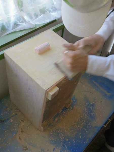 A csiszológép szétesett munka közben, úgyhogy befogtam Férjecskét kézzel csiszolni. 🙂