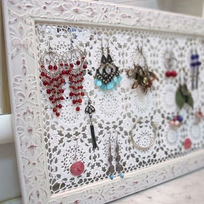 De most végre (legalább) a fülbevalóimnak elkészült egy tároló, ahova felakaszthatom őket szépen, rendszerben. De mielőtt bemutatnám a saját változatomat, gyűjtöttem néhány kedvcsináló képet házilag létrehozott/átalakított fülbevaló tárolóról.
